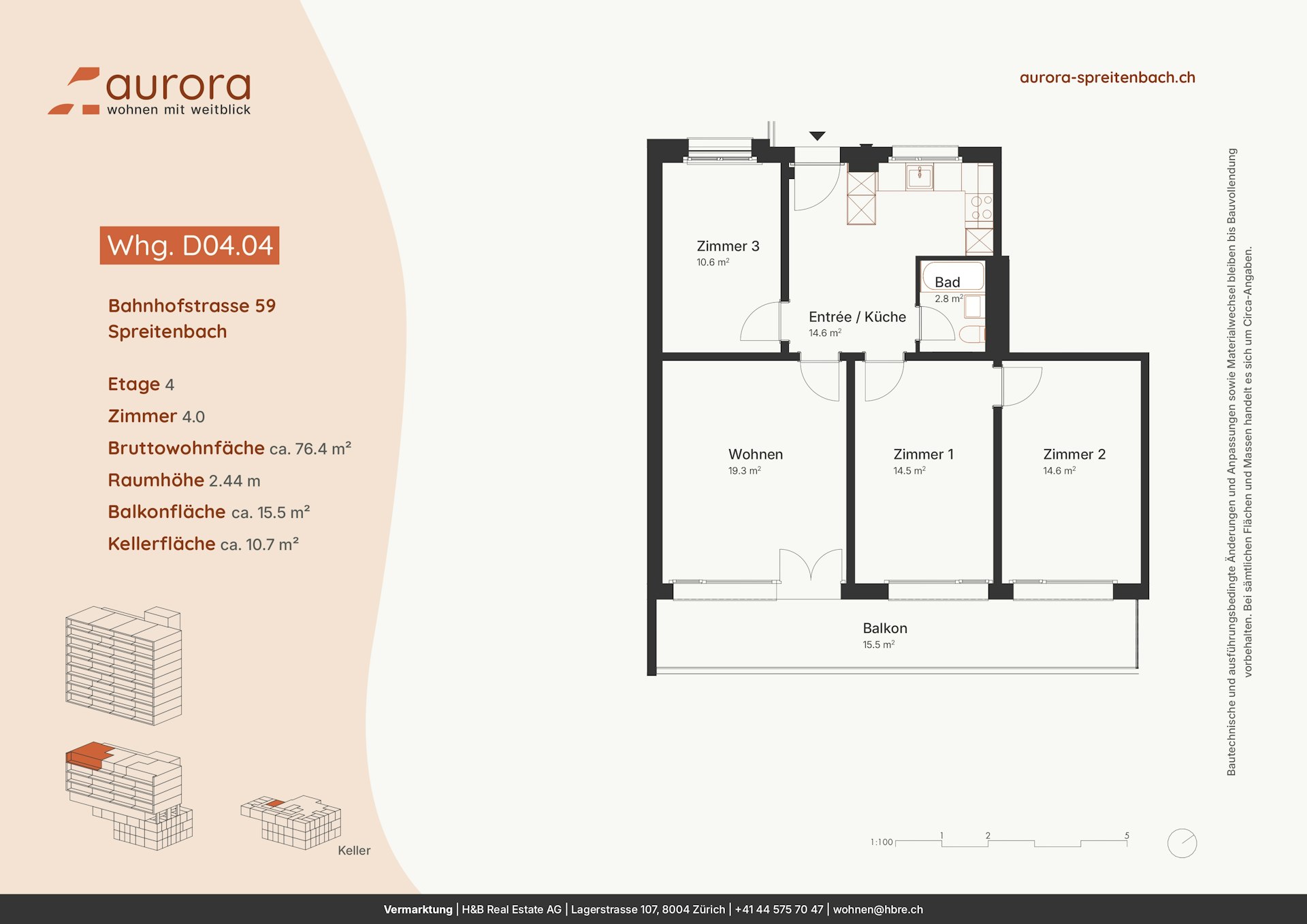 Weitere Informationen finden Sie auf unserer Projektwebseite unter www.aurora-spreitenbach.ch. Für individuelle Beratung und bei Fragen steht Ihnen unser Erstvermietungsteam gerne zur Verfügung. Sie erreichen uns telefonisch unter 044 575 70 47 oder per E-Mail unter [email protected]. Wir freuen uns darauf, Sie bei Ihrem Weg zu einem neuen Zuhause in Spreitenbach zu begleiten. Kontaktieren Sie uns noch heute!