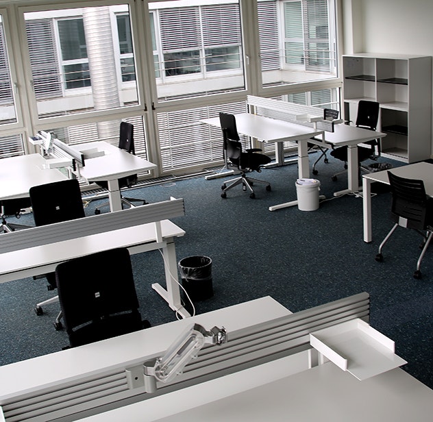 Die verfügbaren Flächen erstrecken sich über mehrere Stockwerke und bieten eine Vielzahl von Möglichkeiten an. Die Büroflächen haben grösstenteils sehr attraktive bodentiefe. Es stehen Ihnen unterschiedliche Flächengrössen zur Auswahl, von neuere Open Space Flächen wie auch starkt unterteilte Bürobereiche mit Ein- und Zweier-Büros. Die Labore sind ausgerüstet nach Biologie- und Chemie-Standardlabore.