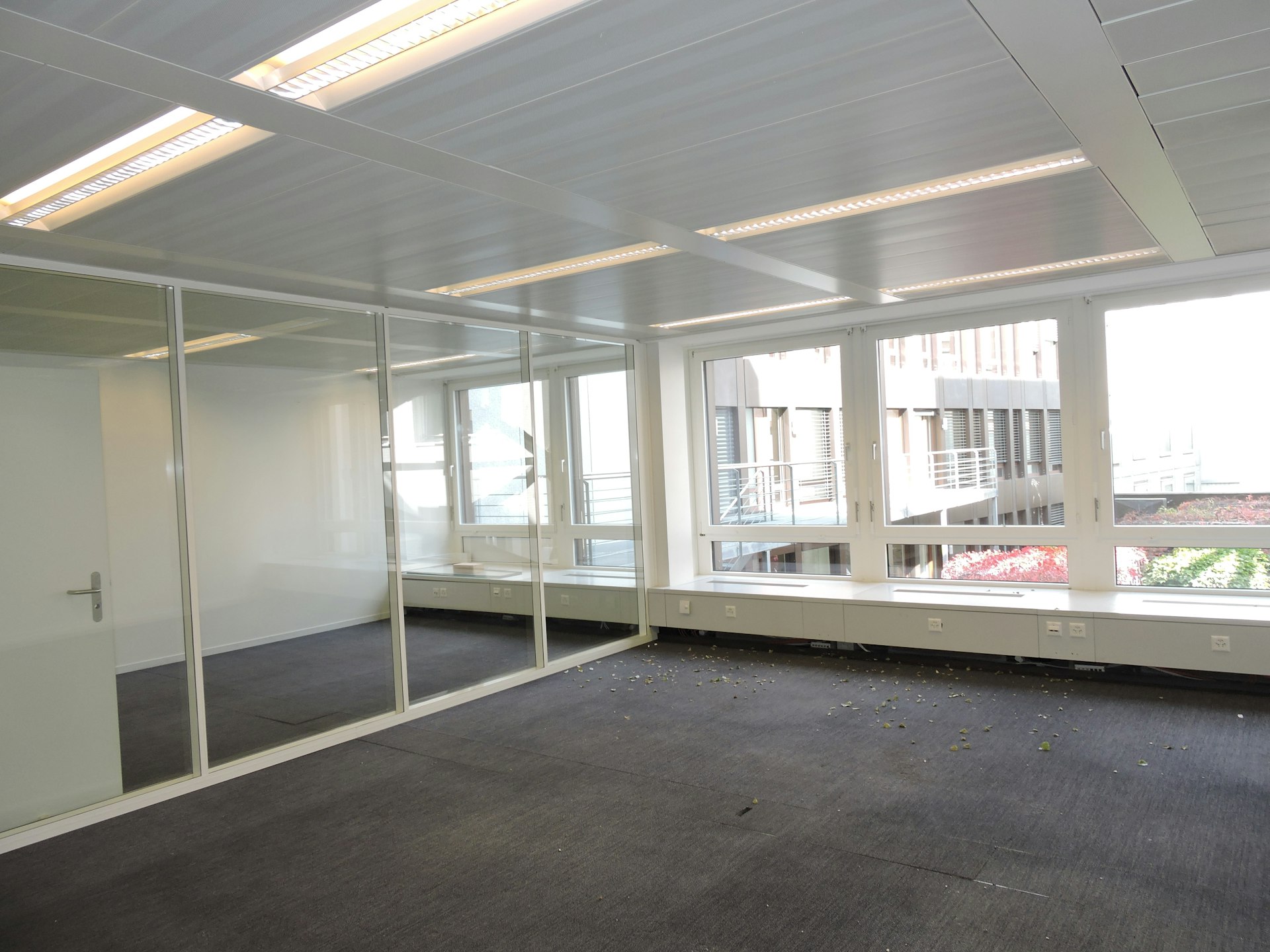 Die Fläche im 2. Obergeschoss bietet auf einer Fläche von ca. 75 m2 (zusätzlich ca. 20 m2 Ver-kehrsfläche) eine optimale Möglichkeit für Büronutzungen, Praxisnutzungen, Start-up Unternehmen etc. Die Fläche ist von der aktuellen Mieterin ausgebaut und bietet ein ideales Raumkonzept, indem Sie aus der Fläche den optimalen Nutzen gezogen haben. Ein offener Arbeitsbereich, ein Sitzungszimmer und ein derzeit als Druckerbereich genutzter Raum bieten einem neuen Mieter eine ideale Arbeitsatmosphäre. Da das Sitzungszimmer durch Glaswände abgetrennt wurde, leidet der Raum unter keiner optischen Einengung und lässt das Tageslicht durch die grossen Fensterfronten dennoch den Raum erfüllen.