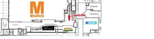 Mit 673m² bietet die Fläche eine geräumige, gut nutzbare Grundfläche. Die Fläche befindet sich im Untergeschoss, der Zugang erfolgt über eine Rolltreppe oder über den Kundenlift. Der Zugang zur Fläche befindet sich direkt am Anfang des Centers, zwischen Haupteingang und Migros, und ist somit stark frequentiert.