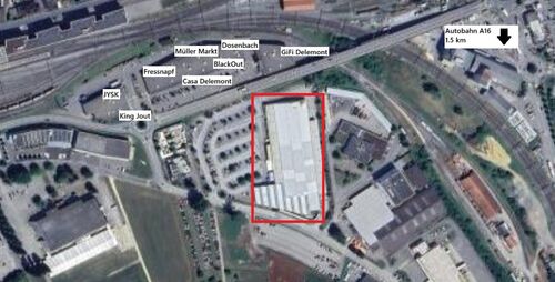 Die Liegenschaft befindet sich in strategisch günstiger Lage nahe der Autobahn A16. In direkter Umgebung befinden sich weiter Läden wie BlackOut, Müller Markt, GiFi, Dosenbach, Jysk und Fressnapf.
