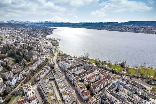 Durch die zurückversetzte Lage von den Hauptstrassen entsteht eine ruhige, hofähnliche Atmosphäre. Die um 1988 erbaute Liegenschaft befindet sich in Gehdistanz zum Bahnhof Tiefenbrunnen, von dem aus der Zürcher Hauptbahnhof mit der S-Bahn in wenigen Minuten erreichbar ist. Die nahegelegene Tram- und Bushaltestelle «Wildbachstrasse» bietet eine optimale Anbindung an die Hotspots von Zürich. Im umliegenden Quartier finden sich zahlreiche attraktive Verpflegungs- und Einkaufsmöglichkeiten.