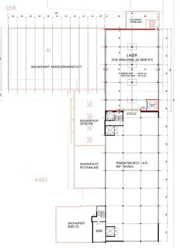 Die Raumhöhen betragen zwischen 4,27 m und 4,6 m, was optimale Nutzungsmöglichkeiten für Produktion und Lagerung bietet. Drei Warenlifte mit einer Tragkraft von bis zu 4 t erleichtern den Transport innerhalb des Gebäudes. LKW’s können über die Laderampen be- und entladen werden. Beheizt wird die Liegenschaft über eine Ölheizung.